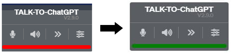 Start 버튼을 클릭하시면 아래와 같이 버튼들이 생성이 되며 chat gpt 창 옆에 음성을 인식한다는 빨간색 ◎ 모양이 뜹니다.