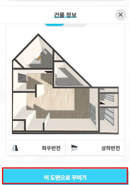 우리집의 도면이 맞는지 확인하고 '이 도면으로 꾸미기'를 클릭합니다.