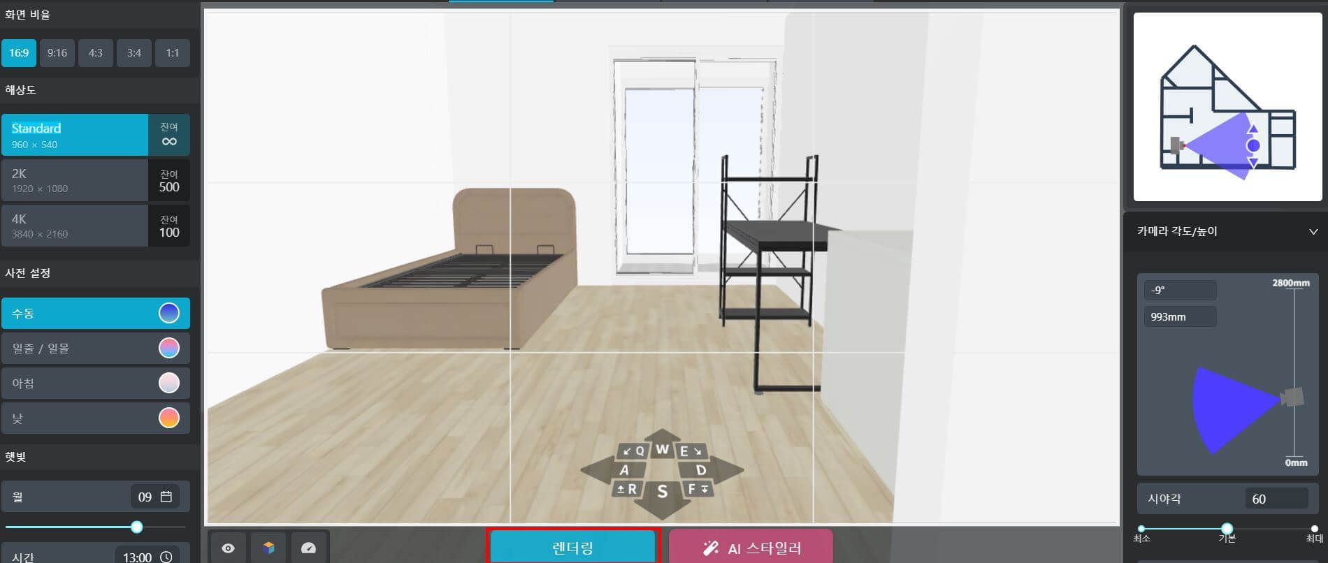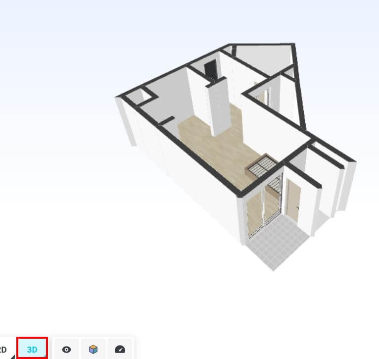 원하는 가구배치를 다 하셨다면 좌측 하단에 3D를 눌러 좀 더 사실적으로 볼 수 있습니다.