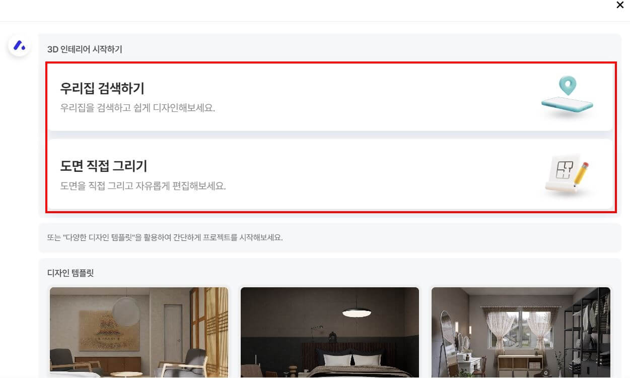 도면을 직접 그리거나 우리 집의 주소를 검색하여 도면을 찾을 수 있습니다.